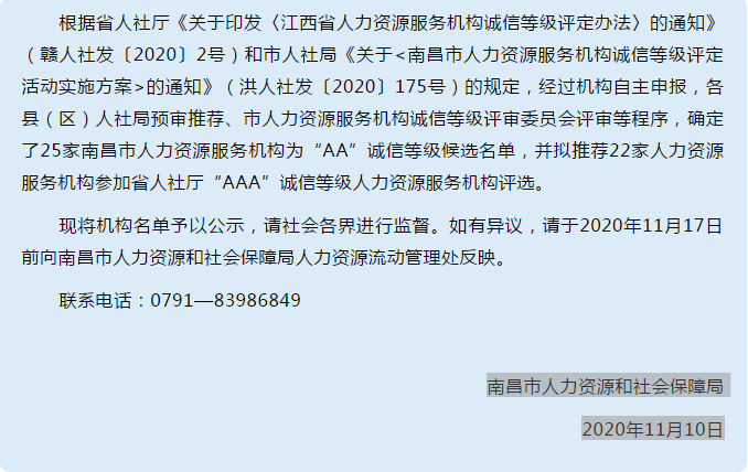 我市發(fā)布人力資源服務(wù)機(jī)構(gòu)誠(chéng)信等級(jí)候選名單及推薦名單~